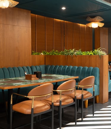 Restaurant bar serving diverse cuisines and crafted beverages.